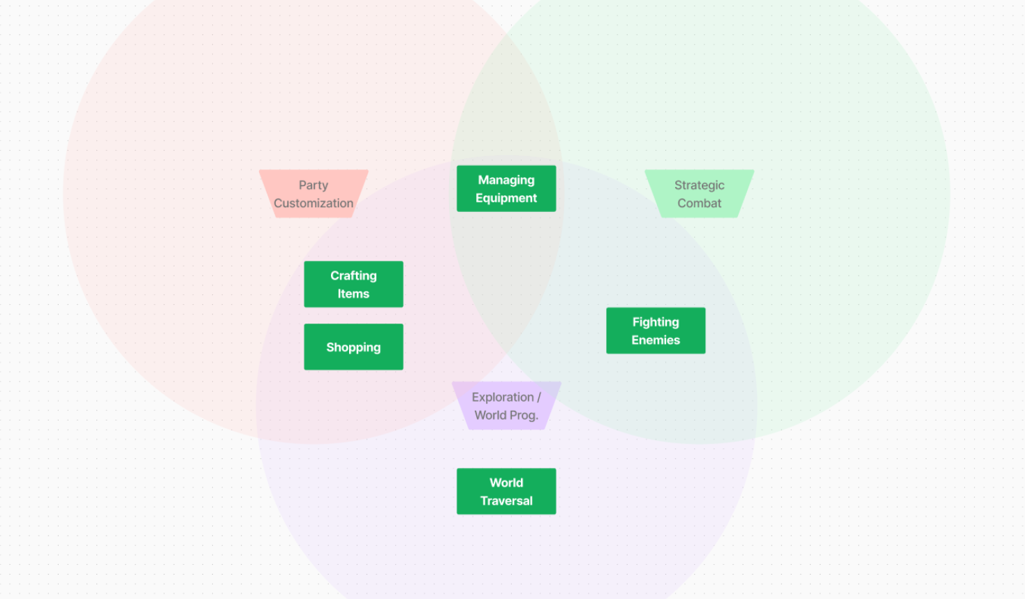 A high-level visualization of how each game mechanic could serve our established Design Pillars